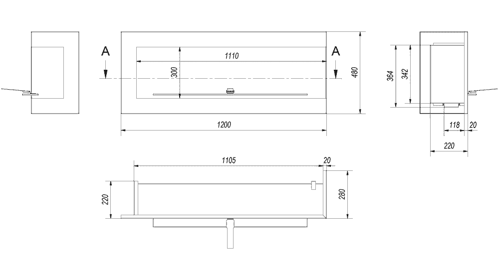 LAREIRA BIOETANOL ENCASTRE CANTO DIREITO KRATKI DELTA 1200